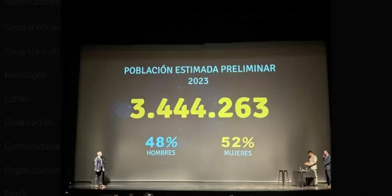 Despus de una cuenta regresiva generando expectativa, en la pantalla del escenario del cntrico Auditorio Adela Reta de Montevideo se proyect la cifra de poblacin residente en el Uruguay relevada por el Censo 2023: 3.444.263. La sala se colm de murmullos.