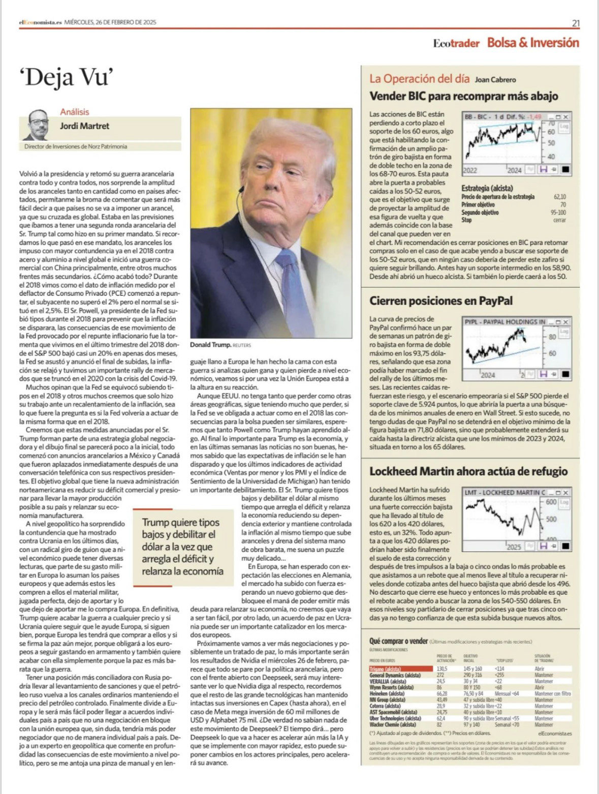 Jordi Martret, Director de Inversiones de Norz Patrimonia analiza la actualidad en El Economista.