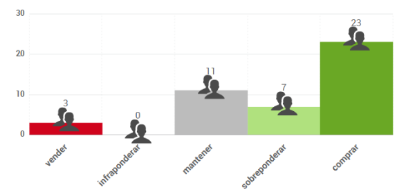 Según el consenso de analistas que recoge FactSet, el precio objetivo promedio se sitúa en 588 $, lo que supondría un potencial de revalorización del 27%. Las opiniones de los analistas que publica FactSet se distribuyen de la siguiente forma: