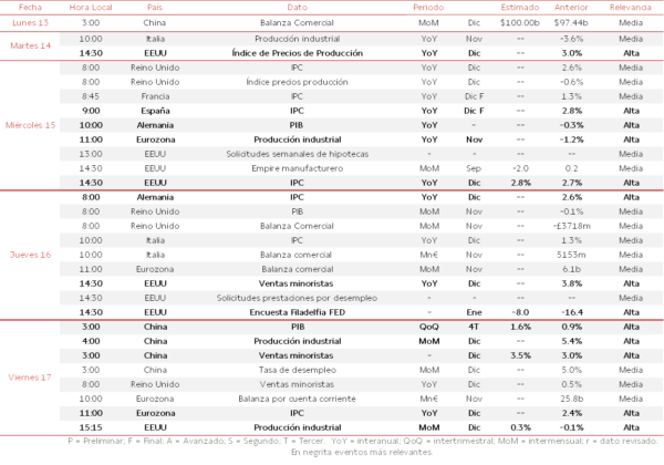 El comienzo de la semana destacará por la ausencia de referencias macroeconómicas. El martes 14, nos centraremos en la publicación del índice de precios de producción de diciembre.
