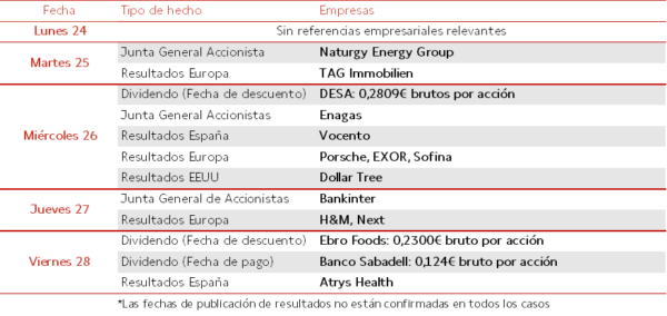 En el ámbito empresarial, destacarán los resultados de Vocento, Porsche, EXOR, H&M entre otros.