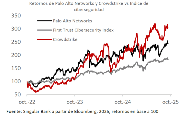 La ciberseguridad se ha consolidado como un pilar estratégico para empresas, gobiernos y ciudadanos. El último año ha estado marcado por una combinación de amenazas cada vez más sofisticadas y una respuesta más inteligente, apoyada en inteligencia artificial y automatización. El sector ha vivido un crecimiento sólido, aunque no exento de sobresaltos. Tres nombres resumen bien esta etapa de expansión y aprendizaje: Palo Alto Networks, CrowdStrike y Palantir.