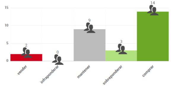 Según el consenso de analistas que recoge FactSet, el precio objetivo promedio se sitúa en 40,46 €, si bien los analistas lo irán revisando tras la presentación de resultados. Las opiniones de los analistas que publica FactSet se distribuyen de la siguiente forma: