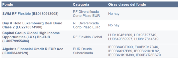 Eso no significa que los fondos monetarios tengan que desaparecer de nuestras carteras, siguen siendo necesarios como colchón para la parte más conservadora de nuestra inversión y como reducto de liquidez a la espera de que surjan oportunidades en el mercado.