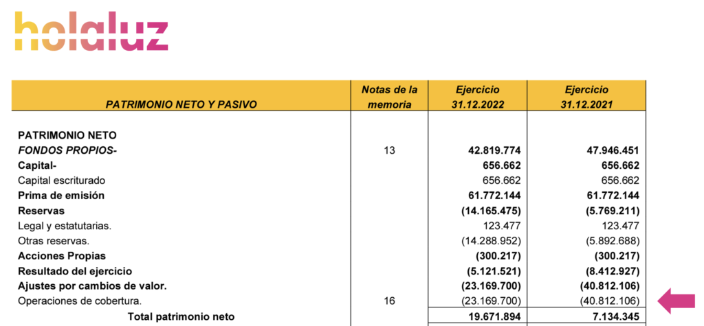 Basta mirar su balance de 2021 y 2022, y ver que han tenido que contabilizar una pérdida potencial por los derivados de 2021 directamente en patrimonio (no en pérdidas contables…) de más de 40 M€. Y en 2022 esas pérdidas potenciales se controlaron y se han reducido a 23 M€.