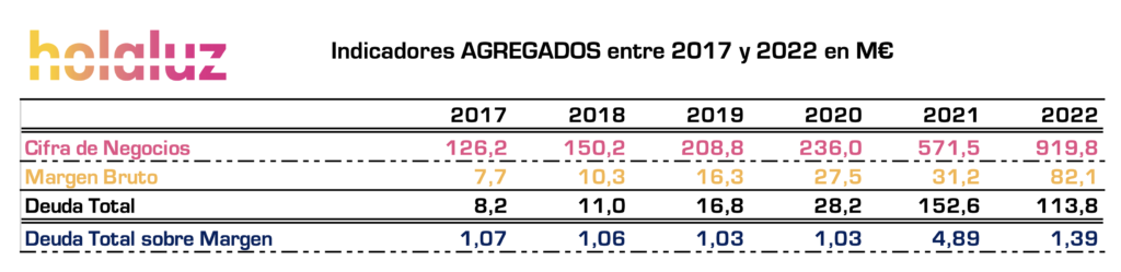 Si tomamos la suma desde 2017 hasta 2022, observamos que, por cada 100 euros de ventas Holaluz: