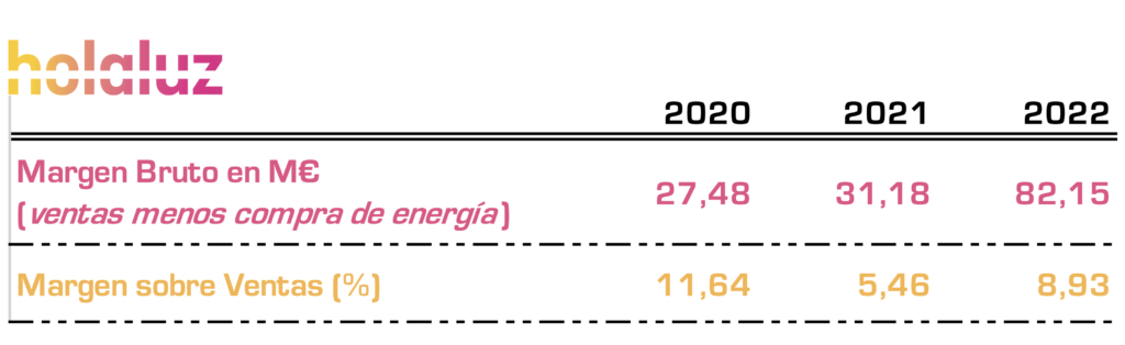 De hecho, justo cuando Holaluz multiplica por casi 4 sus ventas (el gran punto de inflexión de 2020), su margen bruto se multiplica por 3.