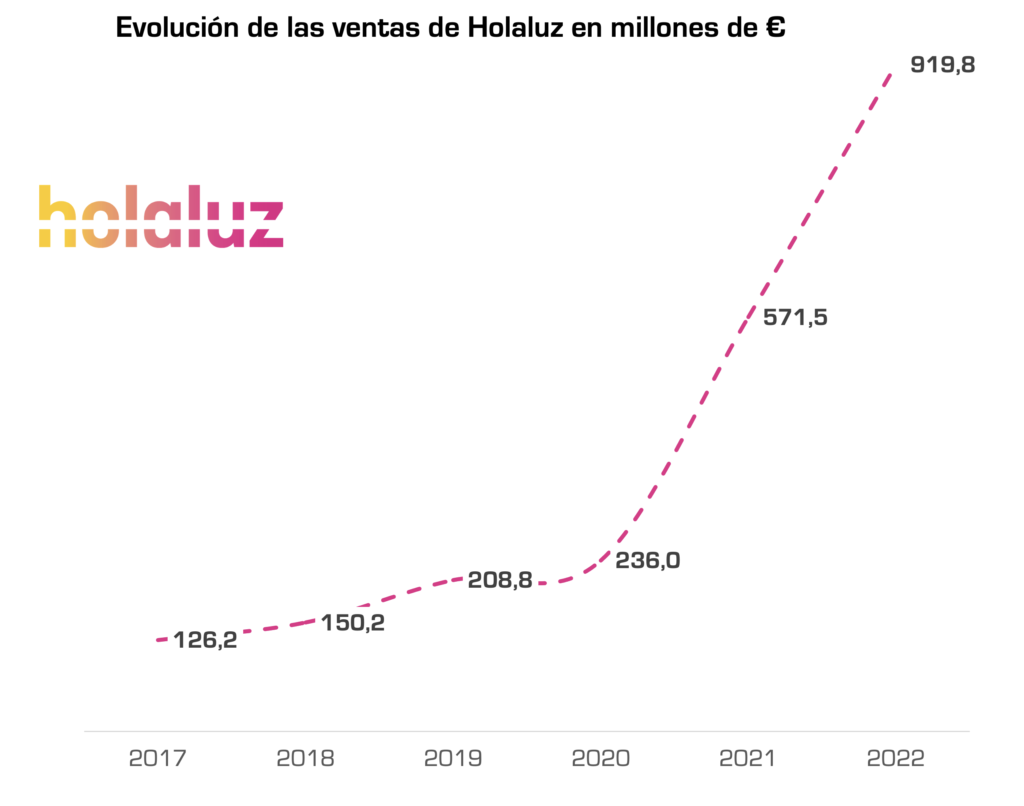 Holaluz, en una síntesis muy básica financiera, compra energía (verde) y vende energía (verde). Por lo tanto, la explosión de sus ventas por la captación de clientes es un primer síntoma de si el modelo de negocio tracciona como una locomotora, o no.