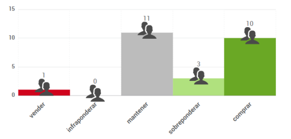 Según el consenso de analistas que recoge FactSet, el precio objetivo promedio se situaba en 53,50 € antes de la presentación de resultados trimestrales. Cabe esperar que algunos analistas realicen revisiones a la baja tras la presentación. Las opiniones de los analistas que publica FactSet se distribuyen de la siguiente forma: