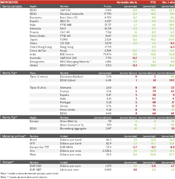 - La TIR del Bund a 10 años ha ascendido 11 pb a 2,60% y el Treasury a 10 años sube 8 pb hasta un 4,48%.