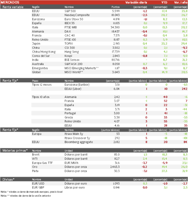 - El Treasury a 10 años sube 1 pb hasta un 4,16%.