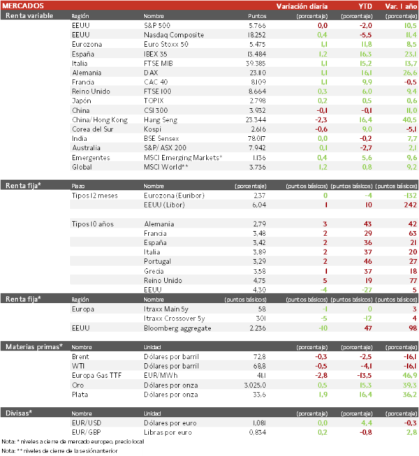 En EEUU, los datos de confianza del consumidor de la Conference Board en febrero han registrado su menor lectura desde los meses de la pandemia, confirmado la tendencia mostrada por el indicador de la Universidad de Michigan la semana pasada. Pese a ello, los índices estadounidenses registraban ligeros avances prolongando el tono positivo de las últimas sesiones.