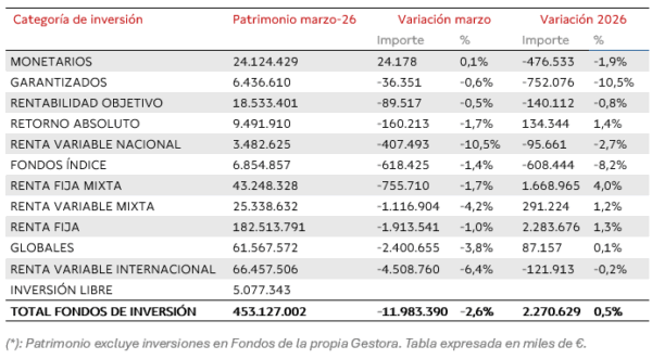 En marzo, solo los fondos monetarios consiguieron cerrar (por la mínima) con incrementos de patrimonio (las rentabilidades permitieron compensar los reembolsos), mientras que la Renta Variable Nacional fue la categoría más castigada.