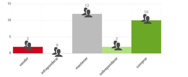 Según el consenso de analistas que recoge FactSet, el precio objetivo promedio se sitúa en 48,06 €. Con la subida de hoy, tras presentar resultados, habría agotado el potencial de revalorización, aunque podría haber revisiones del precio objetivo por parte de los analistas. Las opiniones de los analistas que publica FactSet se distribuyen de la siguiente forma: