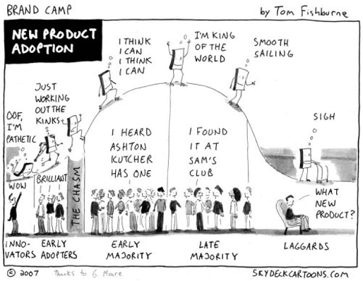 Moore plantea que la tecnología responde a un modelo de ciclo de adopción en el cual hay un comportamiento distinto de los consumidores ante los productos y servicios con un alto componente de novedad tecnológica.