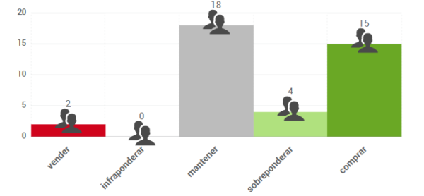 Según el consenso de analistas que recoge FactSet, el precio objetivo promedio se sitúa en 91,89 $, lo que supondría un potencial de revalorización del 3% (sobre el precio de cierre de ayer). Las opiniones de los analistas que publica FactSet se distribuyen de la siguiente forma: