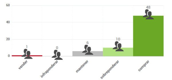 Según el consenso de analistas que recoge FactSet, el precio objetivo promedio se sitúa en 217 $, lo que supondría un potencial de revalorización del 21%. Las opiniones de los analistas que publica FactSet se distribuyen de la siguiente forma: