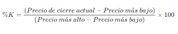 1. %K: La línea rápida que refleja el precio de cierre actual en comparación con los precios más altos y bajos de un período determinado.