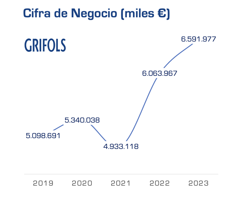 Grifols ha conseguido vender casi 6.600 M€ en 2023. Desde 2019, sus ventas crecieron en casi 1.500 M€, es decir, algo más del 29%.