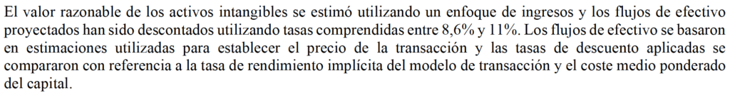 La forma de defender este valor (que es cierto que puede ser de mercado al ser una empresa cotizada) es una tasa de descuento entre el 8,6 y 11%. Es decir, Grifols con esta compra estaba asumiendo que estaba adquiriendo una empresa casi sin riesgo (como si fuera un Inditex), cuando una empresa tecnológica, con altos intangibles, muchas investigaciones en curso y mucha incertidumbre no debería poder valorarse por debajo del 20%: (recomiendo este artículo académico de Aswath Damodaran para profundizar en ello y esta reflexión donde destripo los riesgos básicos de un negocio).