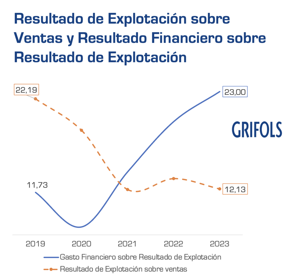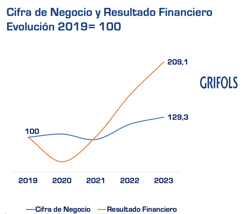 - ¿Qué significa esto? Que, si hubiese logrado mantener márgenes a niveles de 2019, Grifols tendría en 2023 casi 290 M€ más de beneficios, es decir, los multiplicaría por 2,6 veces.