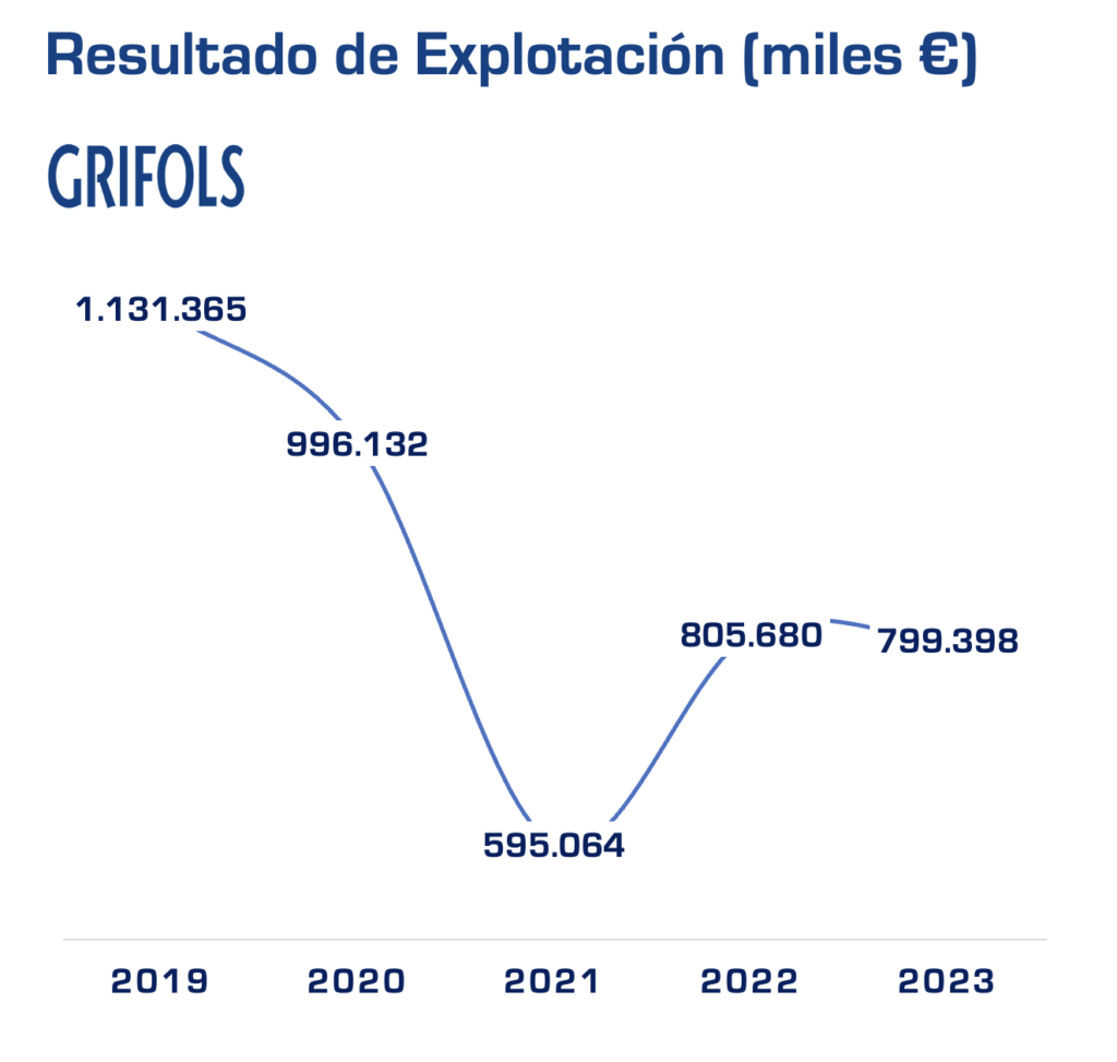 En concreto, desde 2019, el resultado de explotación de Grifols ha caído en un 29%, el equivalente a 330 M€.