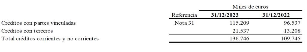A finales de 2023 había un total de 115M€ de créditos con partes vinculadas, lo cual no quiere decir que sean en exclusiva “de la familia Grifols” porque podría ser con cualquier actividad del grupo.