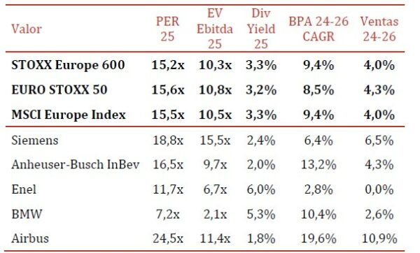 La fuerte revalorización de la bolsa europea en los últimos meses estaría descontando la aceleración de los beneficios a partir de 2026, después de un 2025 de transición afectado por los aranceles y la apreciación de la divisa europea entre otros factores.