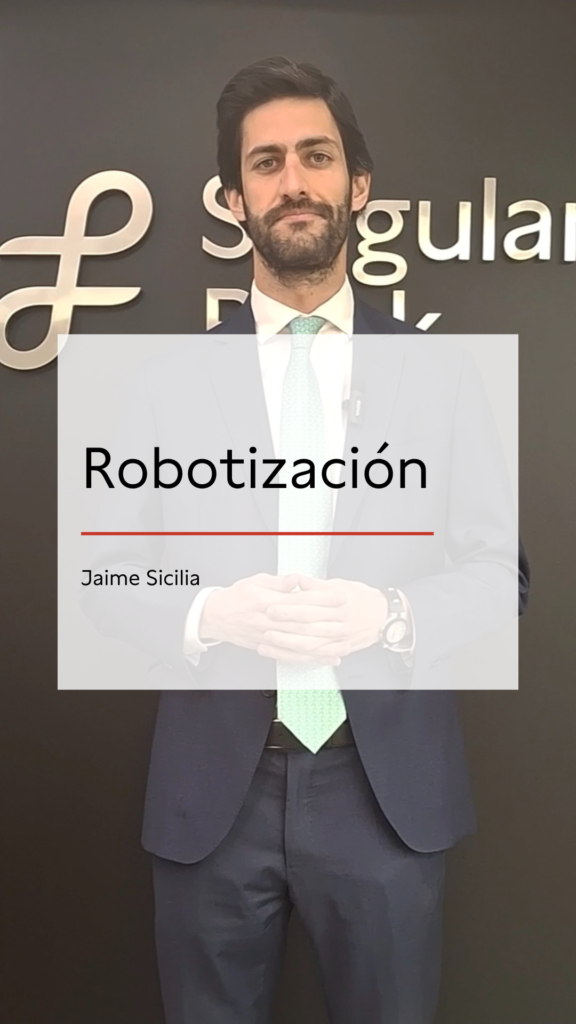 El uso actual de la robotización es industrial, pero con gran crecimiento en servicios y hogares. Como tiene exigentes valoraciones, falta de regulación y escasa visibilidad sobre la cuantía, plazo y distribución de los beneficios en el futuro, su inversión sirve para diversificar la exposición a Tecnología. La inversión debe estar repartida globalmente, con peso relevante en China y en el resto de Asia.