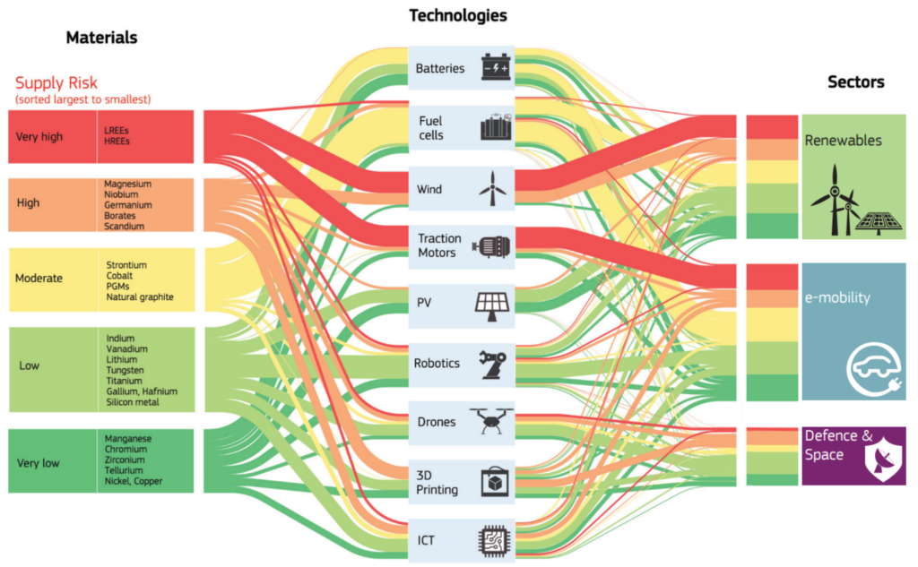 - En primer lugar, la transición energética global requiere grandes cantidades de materiales como el litio, el cobre, el cobalto y las tierras raras.