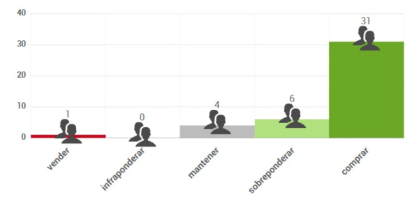 Según el consenso de analistas que recoge FactSet, el precio objetivo promedio se sitúa en 108,60 $, lo que supondría un potencial de revalorización del 12,61%. Las opiniones de los analistas que publica FactSet se distribuyen de la siguiente forma: