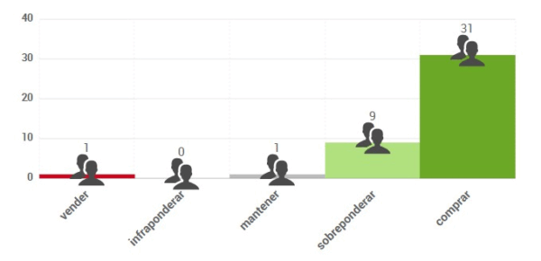 Según el consenso de analistas que recoge FactSet, el precio objetivo promedio se sitúa en 112,26 $, lo que supondría un potencial de revalorización del 14,61%. Las opiniones de los analistas que publica FactSet se distribuyen de la siguiente forma: