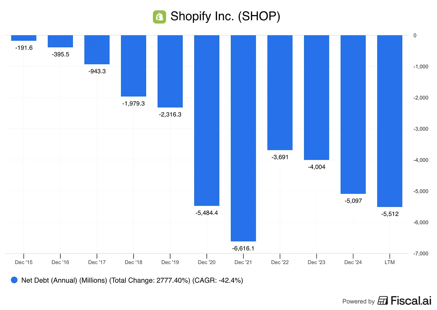 • Ejemplo: Shopify (no tiene deuda y aumenta la distancia)