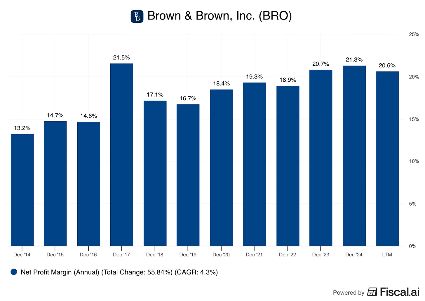 • Ejemplo: Brown & Brown (+4,3% de mejora en margen cada año)