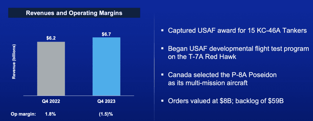 En este rubro, solo han logrado crecer casi un 10%. La compañía sigue reportando pérdidas debudo a programas militares y numerosas startups que compiten con Boeing en temas espaciales.