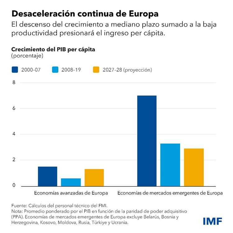 Los cambios mundiales agravarán los arraigados problemas de crecimiento en Europa. La pandemia y los persistentes problemas de oferta de energía se han sumado a los obstáculos estructurales, perturbando las cadenas de suministro e incrementando los costos de producción. Ahora los países europeos se enfrentan también a cambios estructurales derivados de la fragmentación geopolítica, el cambio climático y la necesaria adaptación a nuevas tecnologías, como por ejemplo en la industria del automóvil.