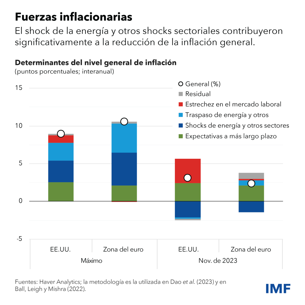 Ante el retroceso de la inflación y la estabilidad del crecimiento, ha llegado el momento de hacer un balance y mirar al futuro. Nuestro análisis muestra que una proporción considerable de la desinflación reciente se produjo a través de un descenso de los precios de la energía y las materias primas, y no de una contracción de la actividad económica.