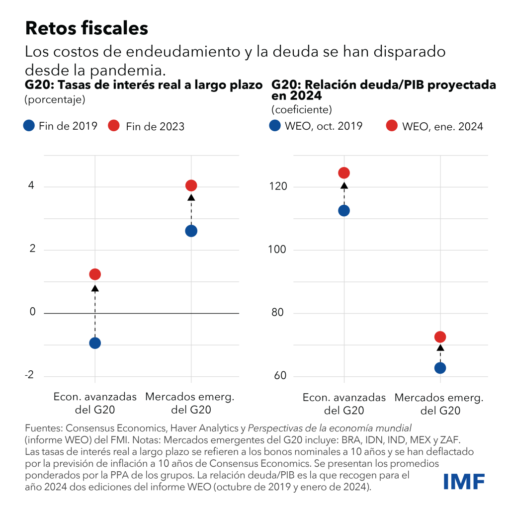 El principal desafío que tenemos por delante es abordar los elevados riesgos fiscales. La mayoría de los países salieron de la pandemia y la crisis energética con niveles de deuda pública y costos de endeudamiento más altos. Reducir la deuda y el déficit público generará espacio para enfrentar shocks futuros.