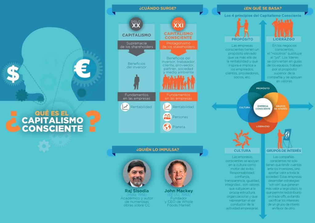 En la siguiente infografía analizamos el Capitalismo Consciente de una forma muy visual, lo que nos permitirá tener una primera toma de contacto con este sistema.