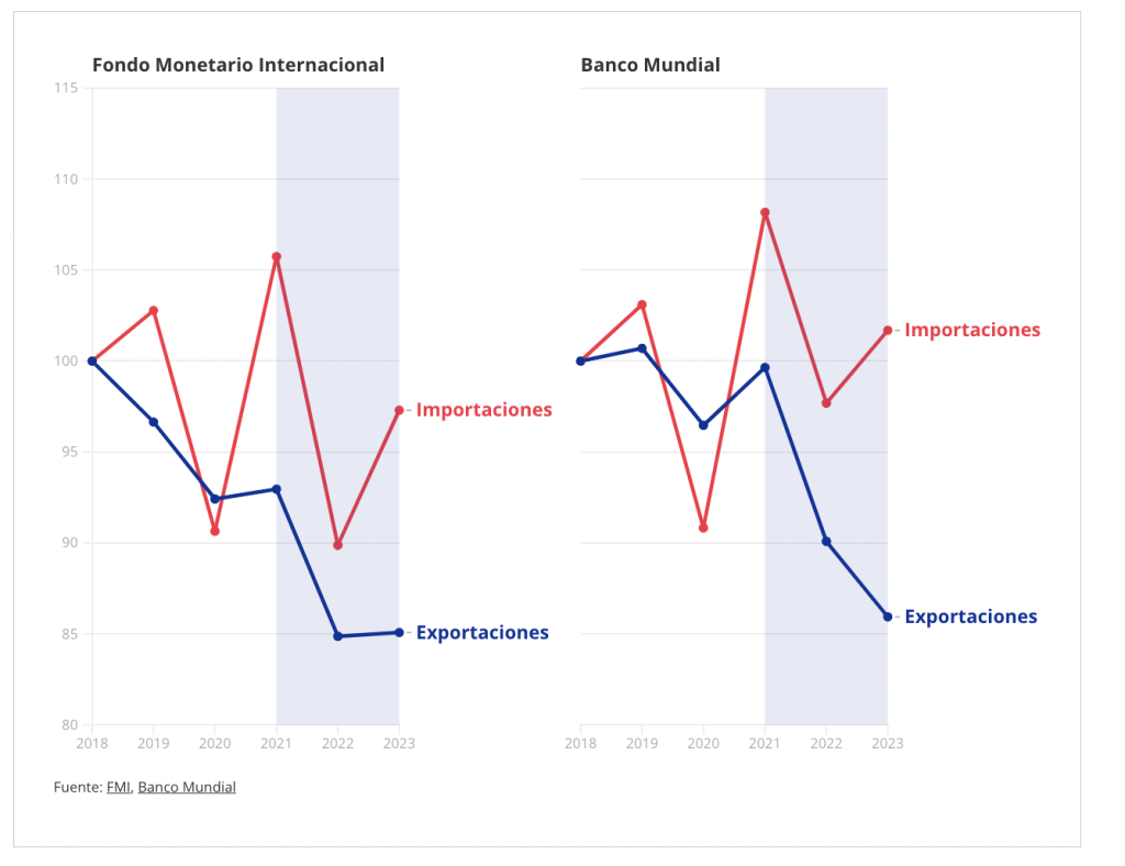 Las cifras demuestran que las medidas restrictivas están dando resultados. Tanto el Banco Mundial como el FMI calcularon que en 2022 el comercio ruso de bienes y servicios iba a experimentar una caída considerable. Para 2023, se prevé que las importaciones sean superiores a las de 2022, mientras que, según el Banco Mundial, las exportaciones seguirán disminuyendo. De acuerdo con el FMI, se mantendrán casi al mismo nivel.